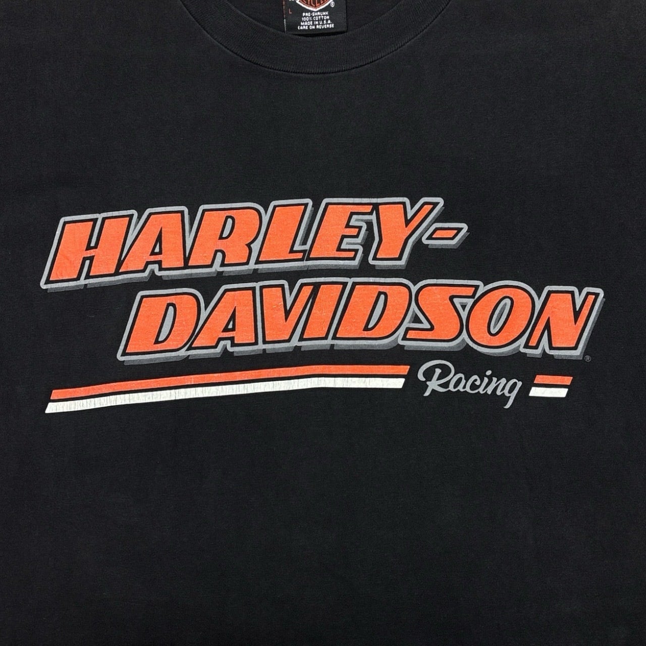 90s Racing Logo Harley Tee BLACK レーシングロゴ ハーレーTシャツ ブラック L