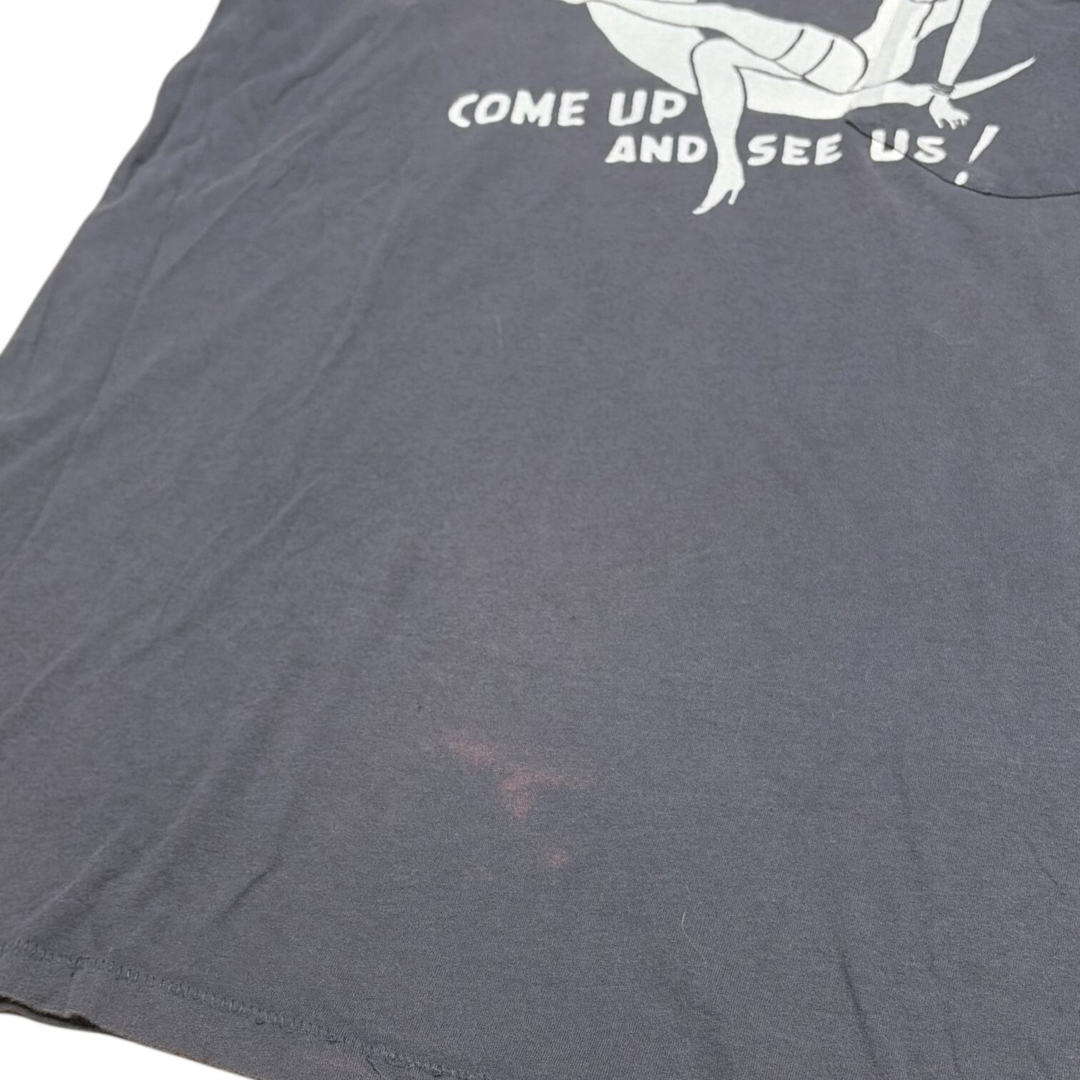 フェードしたボディに月と女性のミステリアスなプリントが映える一着で、レディースMサイズは女性らしいすっきりシルエットが魅力です。