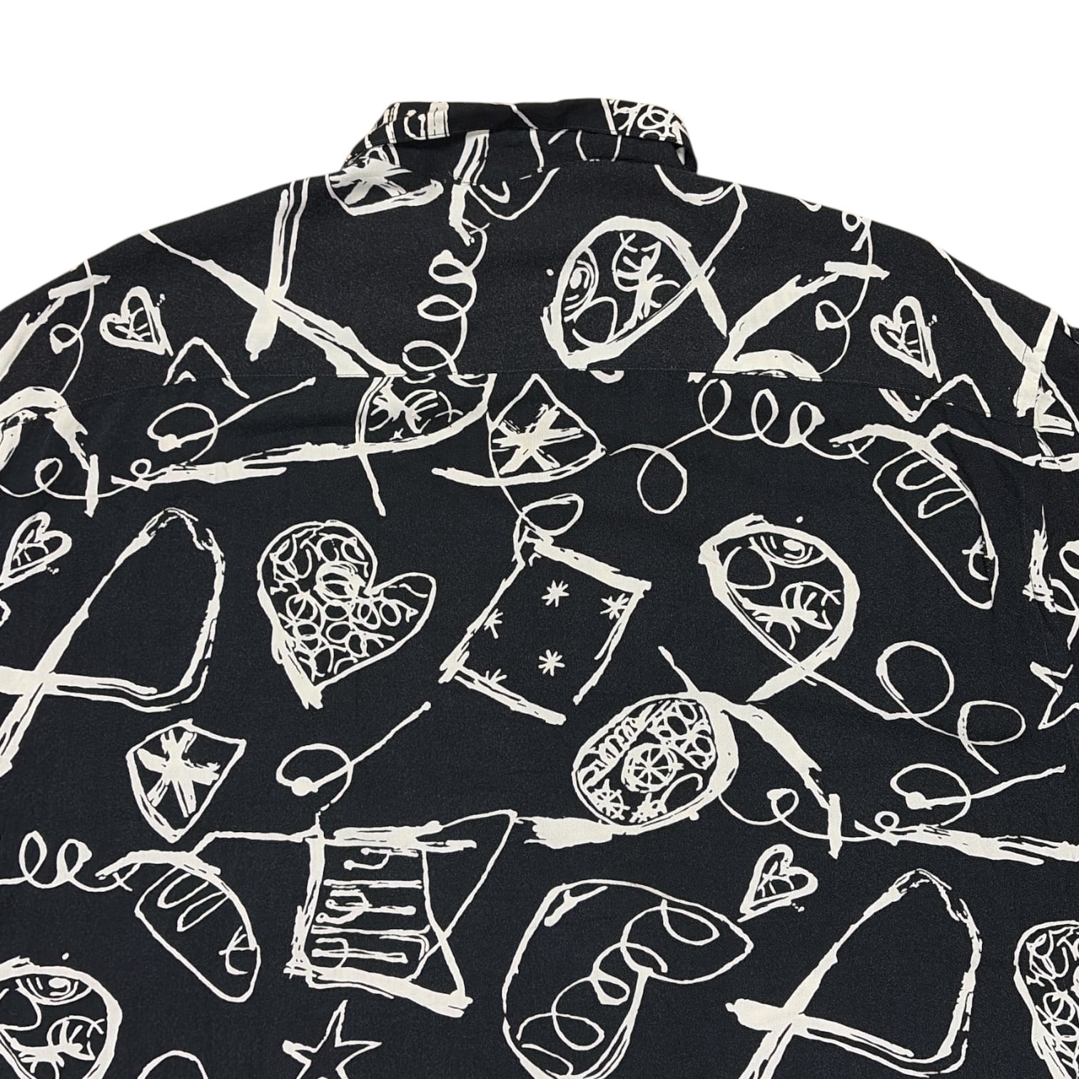 ブラック×ホワイトの配色に映える総柄デザインで、存在感がありながらもスタイリングに取り入れやすい仕上がりです。