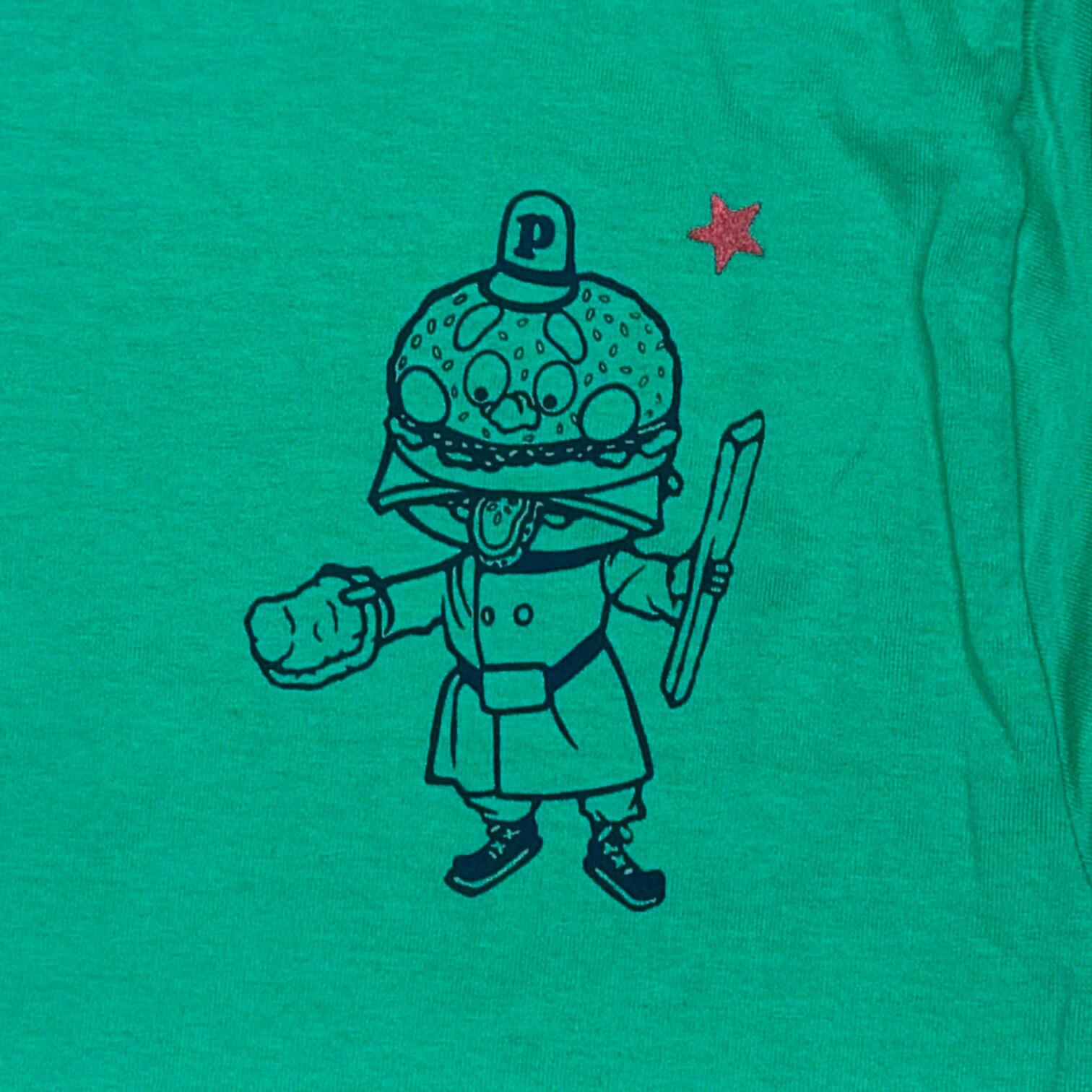当商品はハンドスクリーンプリントによる工程によってプリントの歪みや位置の少々ずれ、インクの滲み、スレ、インク飛びなどが見受けられる場合がございます。返品及び交換の対象となりませんので予めご了承下さい。