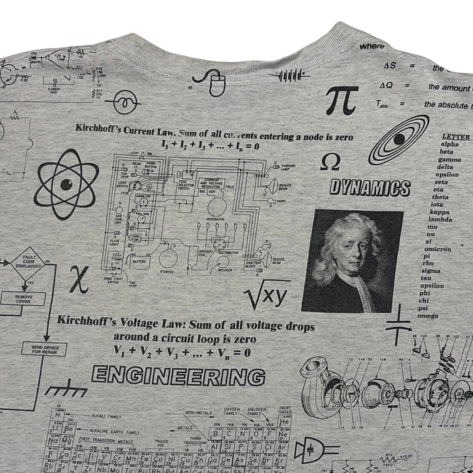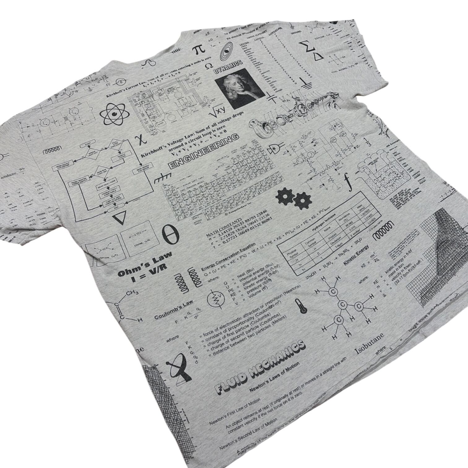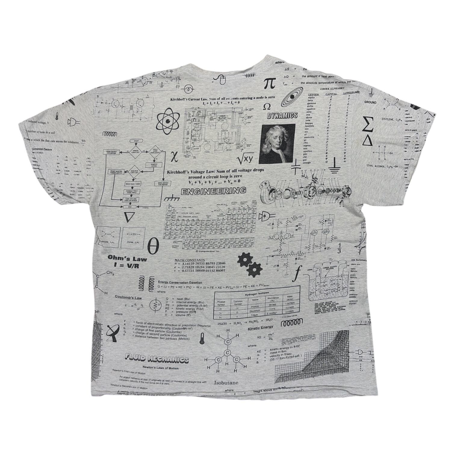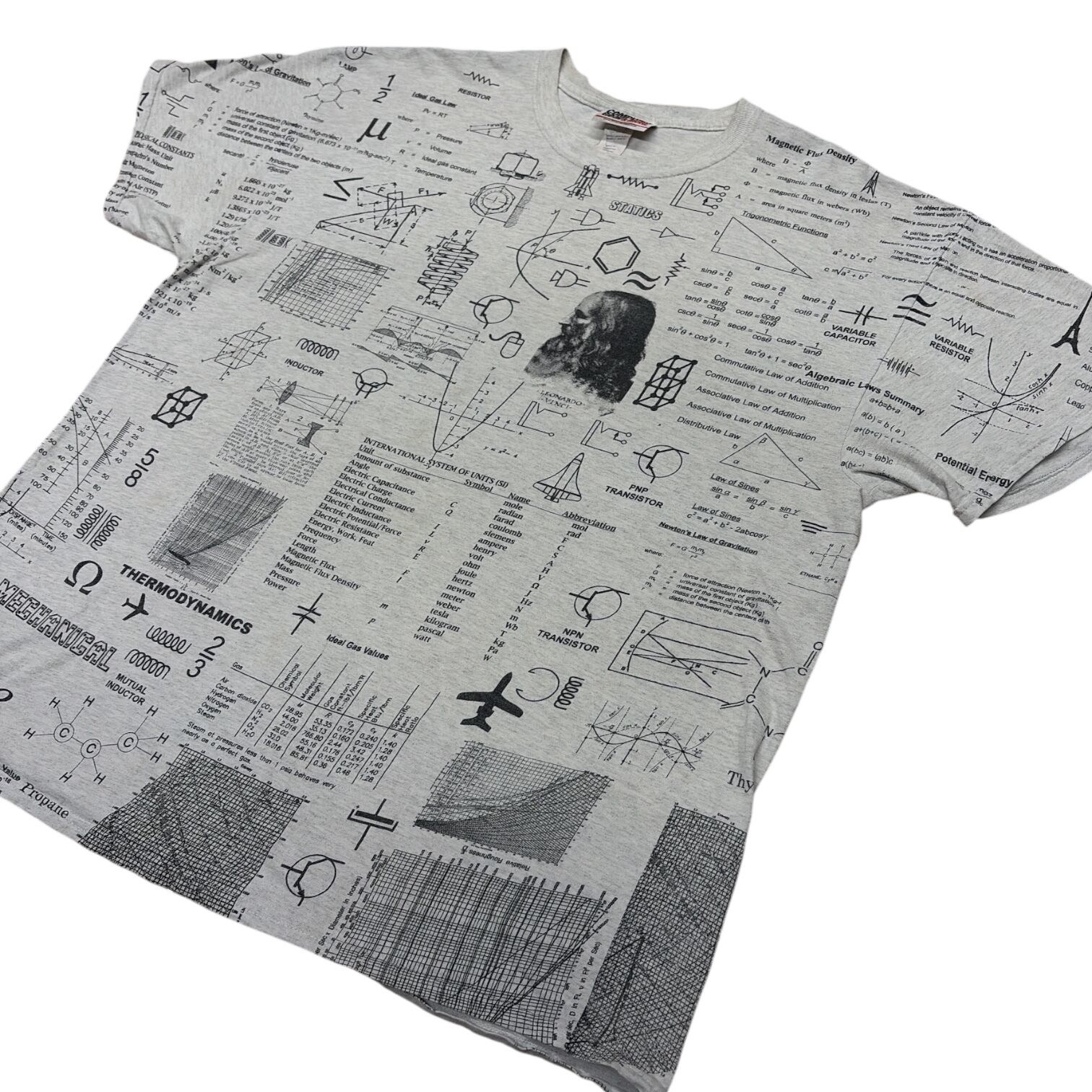 アッシュグレーボディに、レオナルド・ダ・ヴィンチを思わせる複雑な数式と計算式がびっしりプリント。リブ部分までデザインが回っていて、360°インパクト大の仕上がりです。