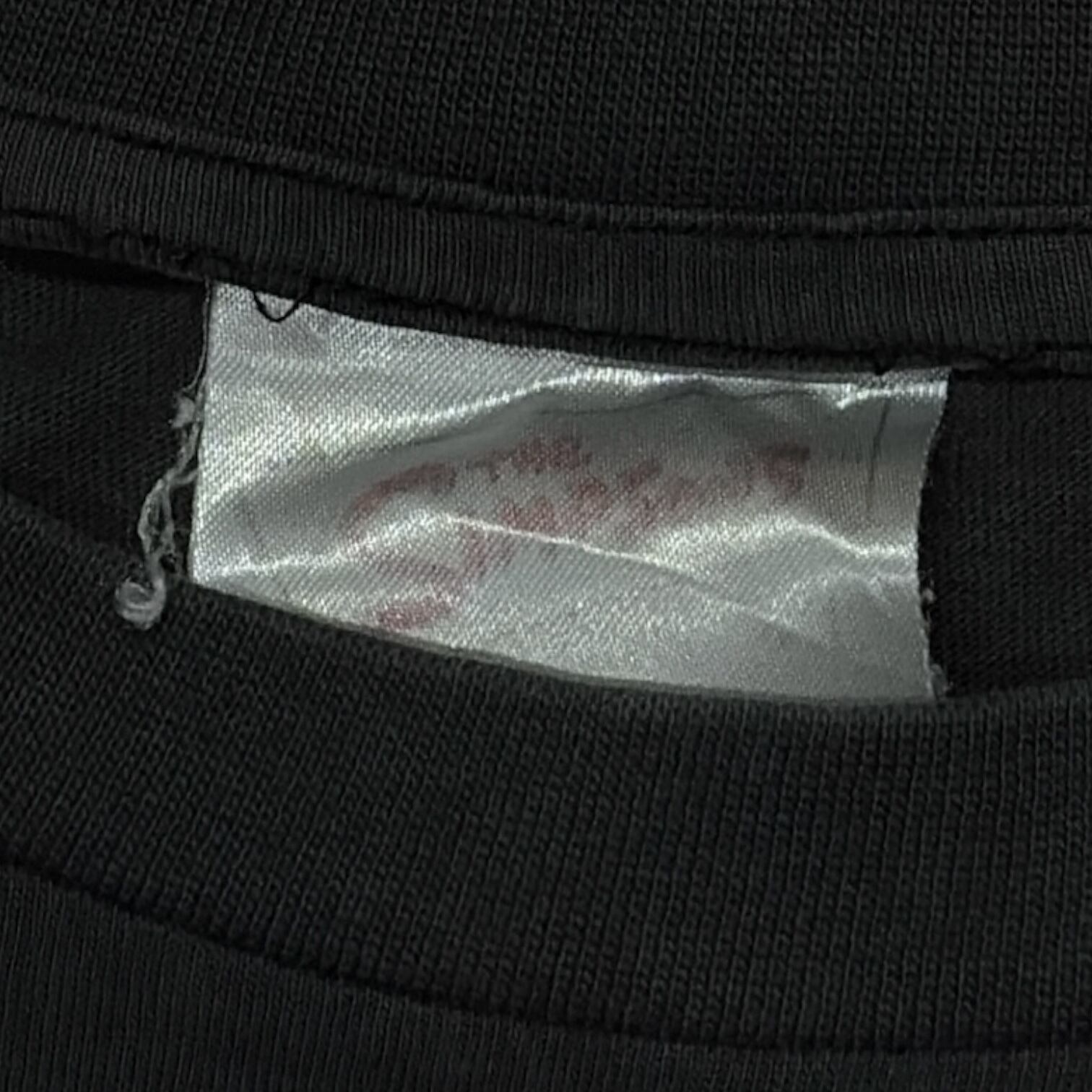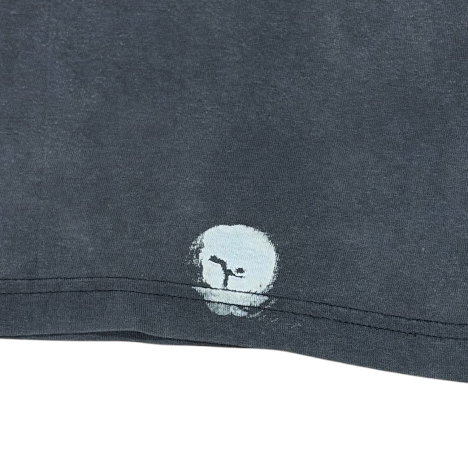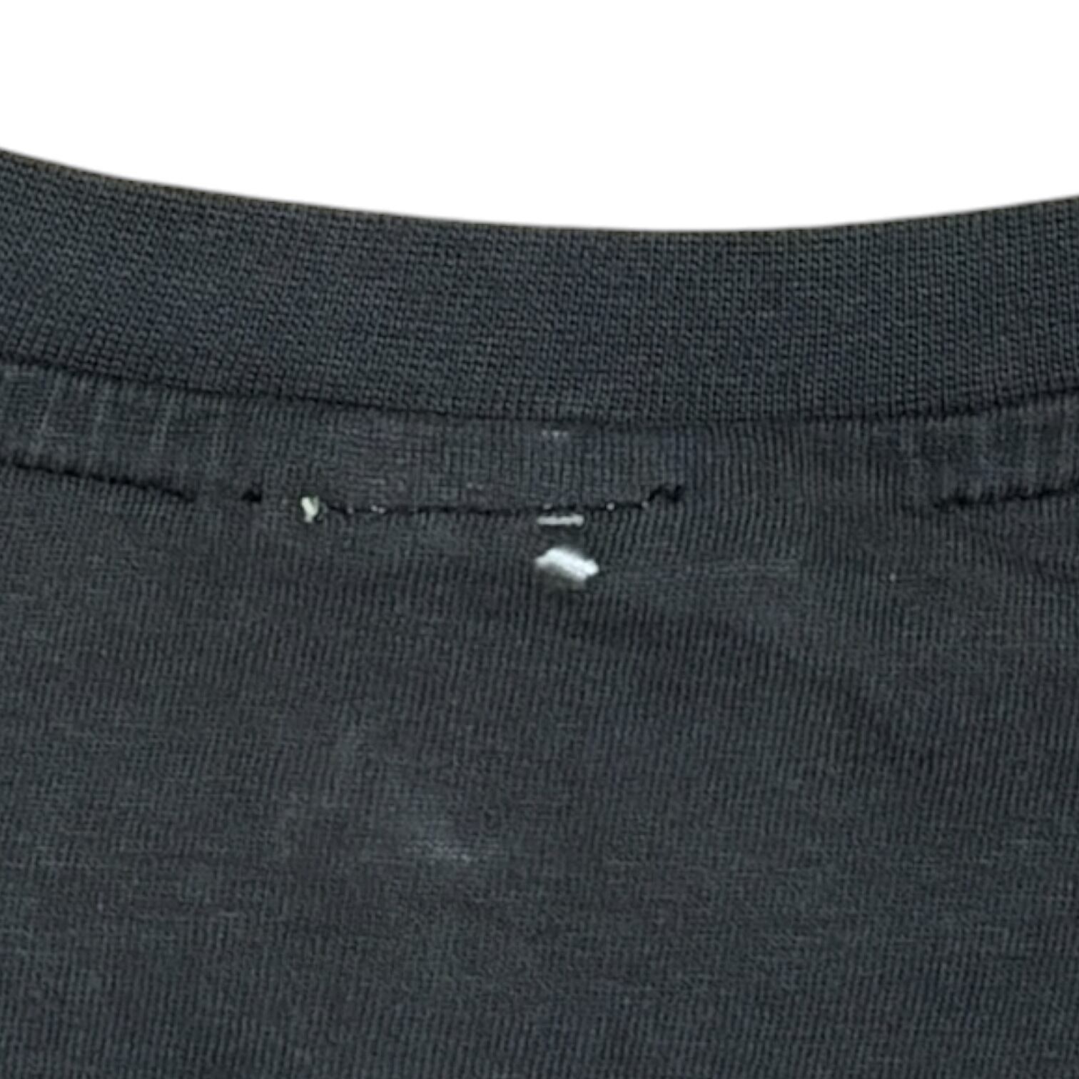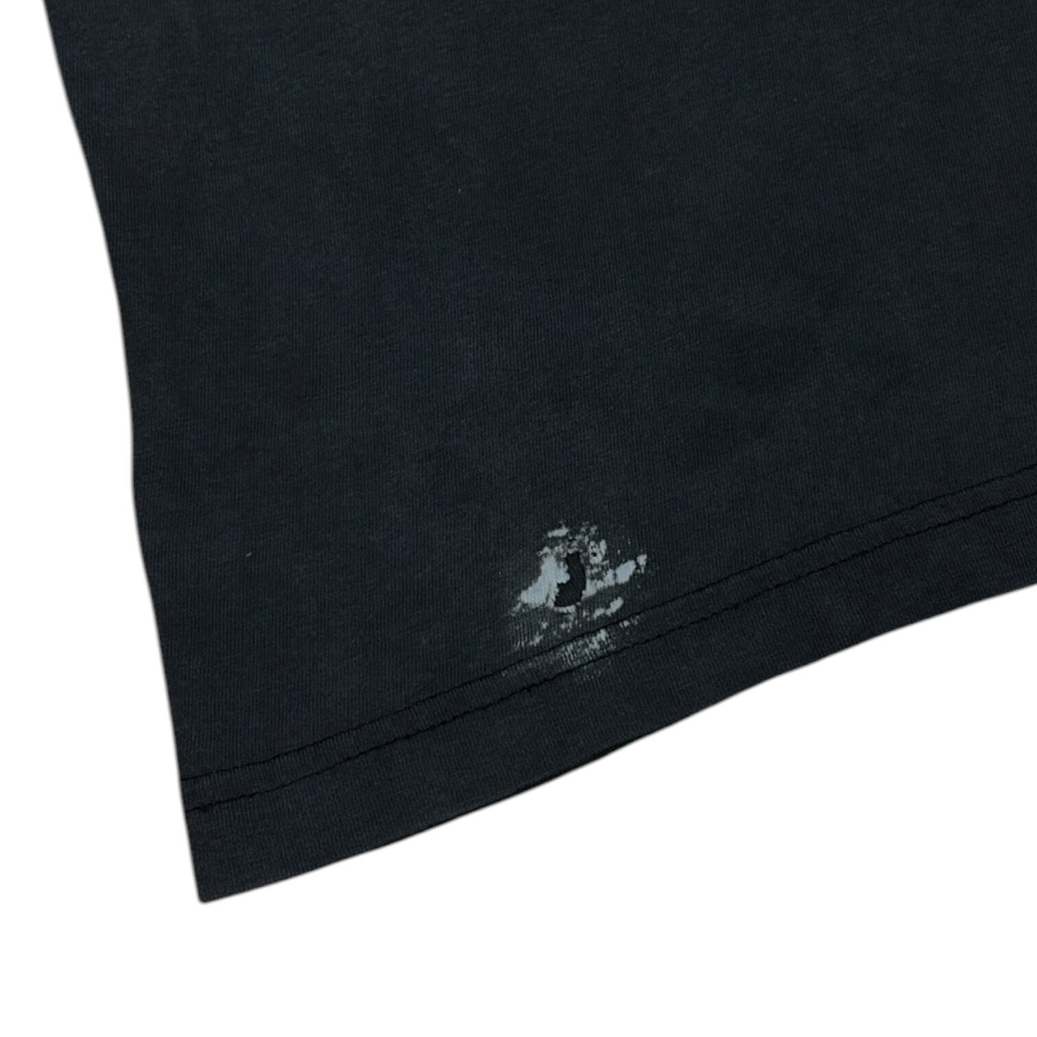 ブラックボディがかなりフェードして色褪せた風合いが魅力で、フロント裾近くやプリント周りに自然な穴あきあり。
